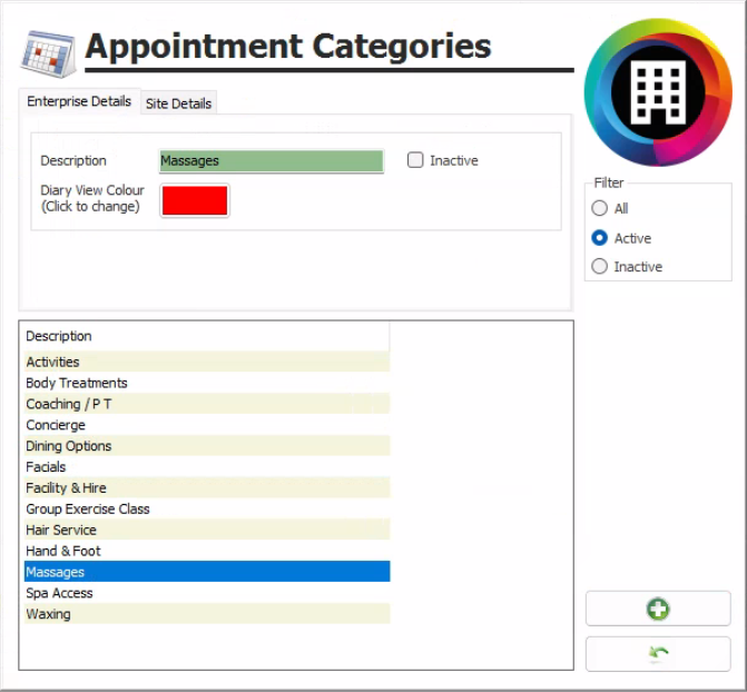 To input a new “Appointment Category” click onto the “Green Plus” button