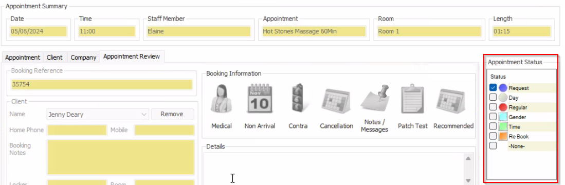 The Status Types are used to alert the user when amending an appointment using the drag & drop facility