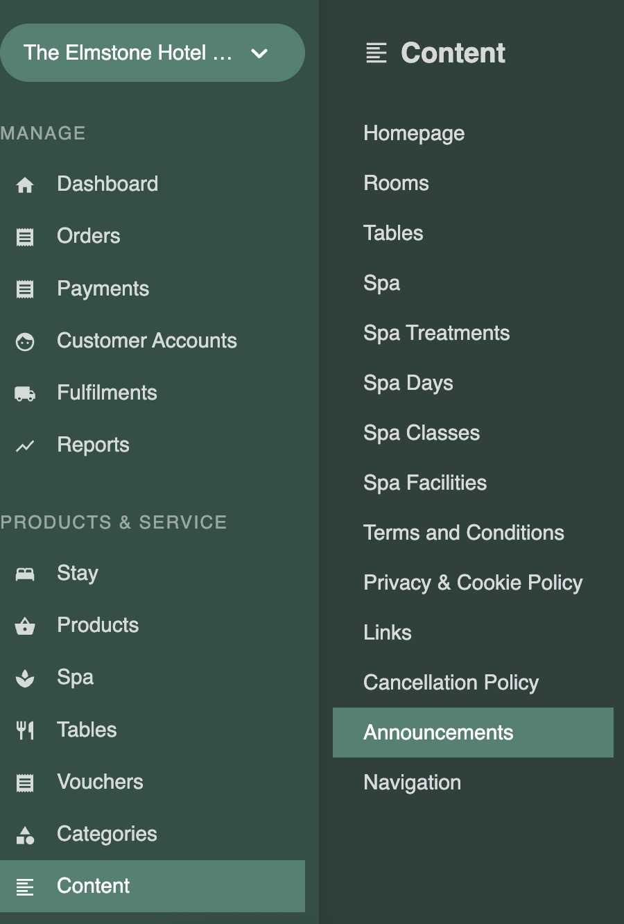 ? Summary This article explains how to update the call-to-action buttons on your ecommerce platform. These buttons appear on your storefront and side menu, allowing you to customise labels such as Rooms, Spa, or Events to match your brand or guest ...